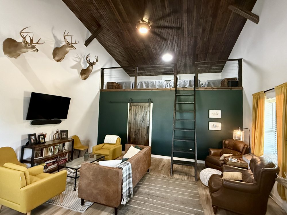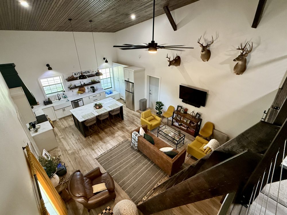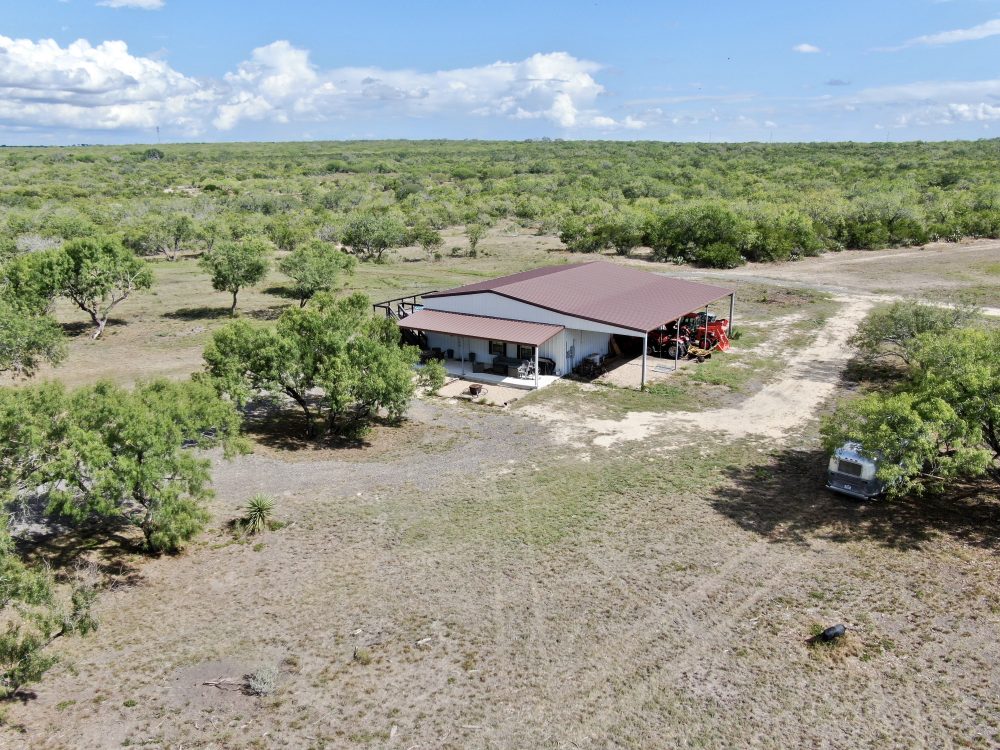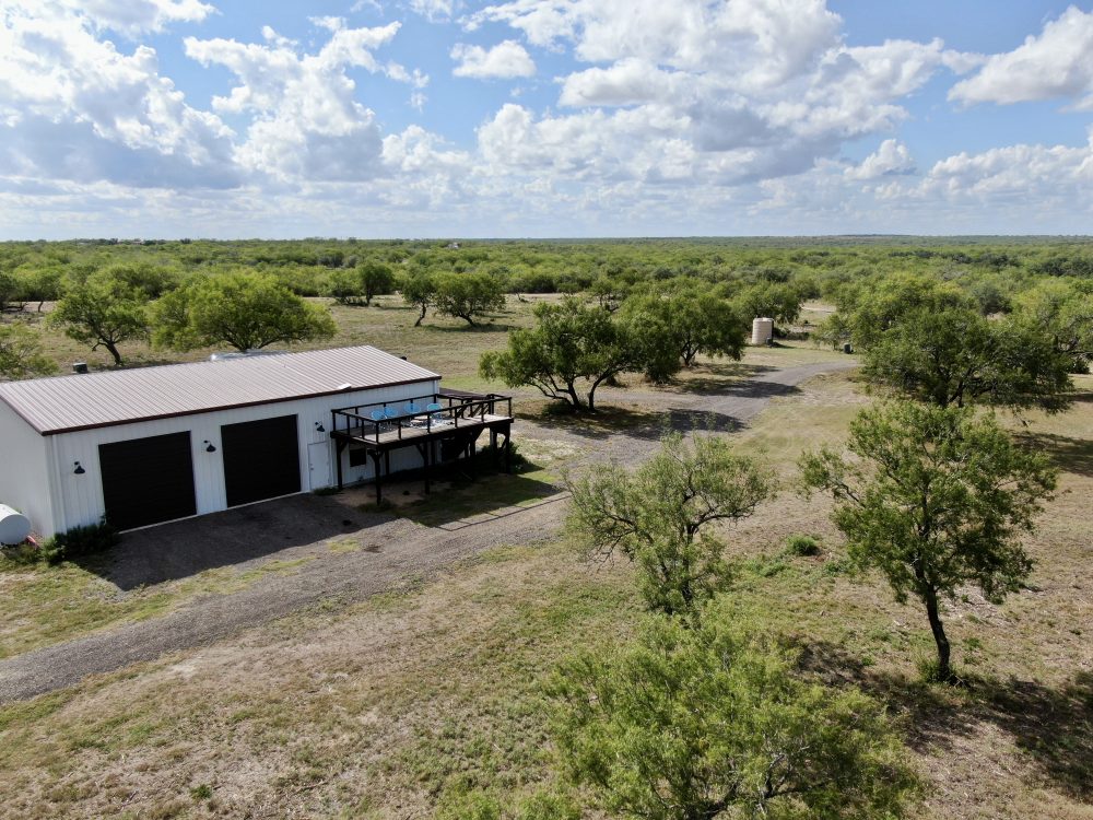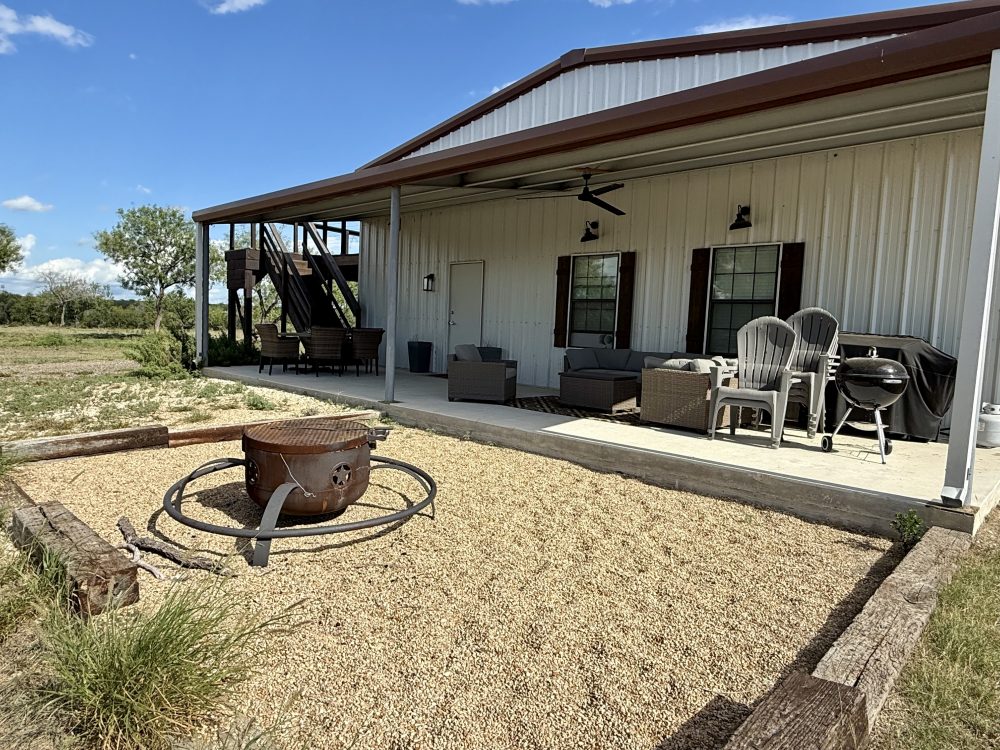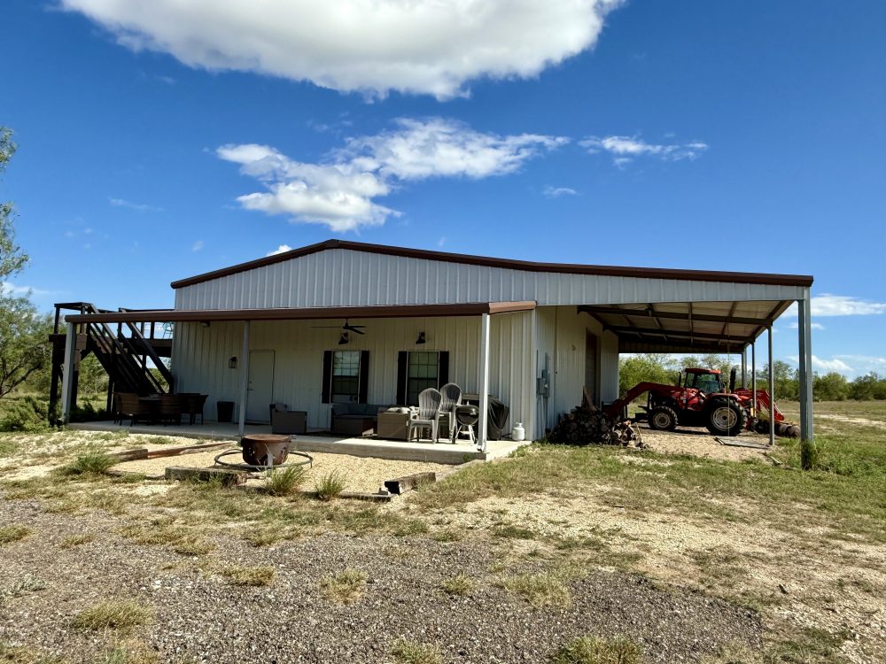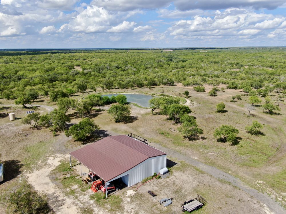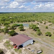 Improvements: Enter through the electric gate off of recently paved CR 229. The ranch has a recently constructed barndominium featuring 800 square feet of air conditioned living space and 1,600 square feet of barn space. The living area is an open concept kitchen and living room featuring marble countertops, high ceilings, and laminate wood flooring, along with a loft containing 4 twin beds. In addition there is one bedroom and one full bath with an oversized walk in shower. The barn area features three 14-foot overhead roll up doors, an enclosed workshop area, washer/dryer, and plenty of space for storage of equipment and tools. Outside, there is 1,200 square feet of covered overhang storage for additional heavy equipment or vehicles. There is 400 square feet of covered porch with an overhead fan and fire pit area, and also an elevated second story observation deck with some really pretty views of the pond and creek bottom below. The ranch is perimeter fenced with 5 strand barbed wire, and is in good condition. There are 4 hunting blinds, 6 corn feeders, and several bow hunting set-ups throughout the ranch.